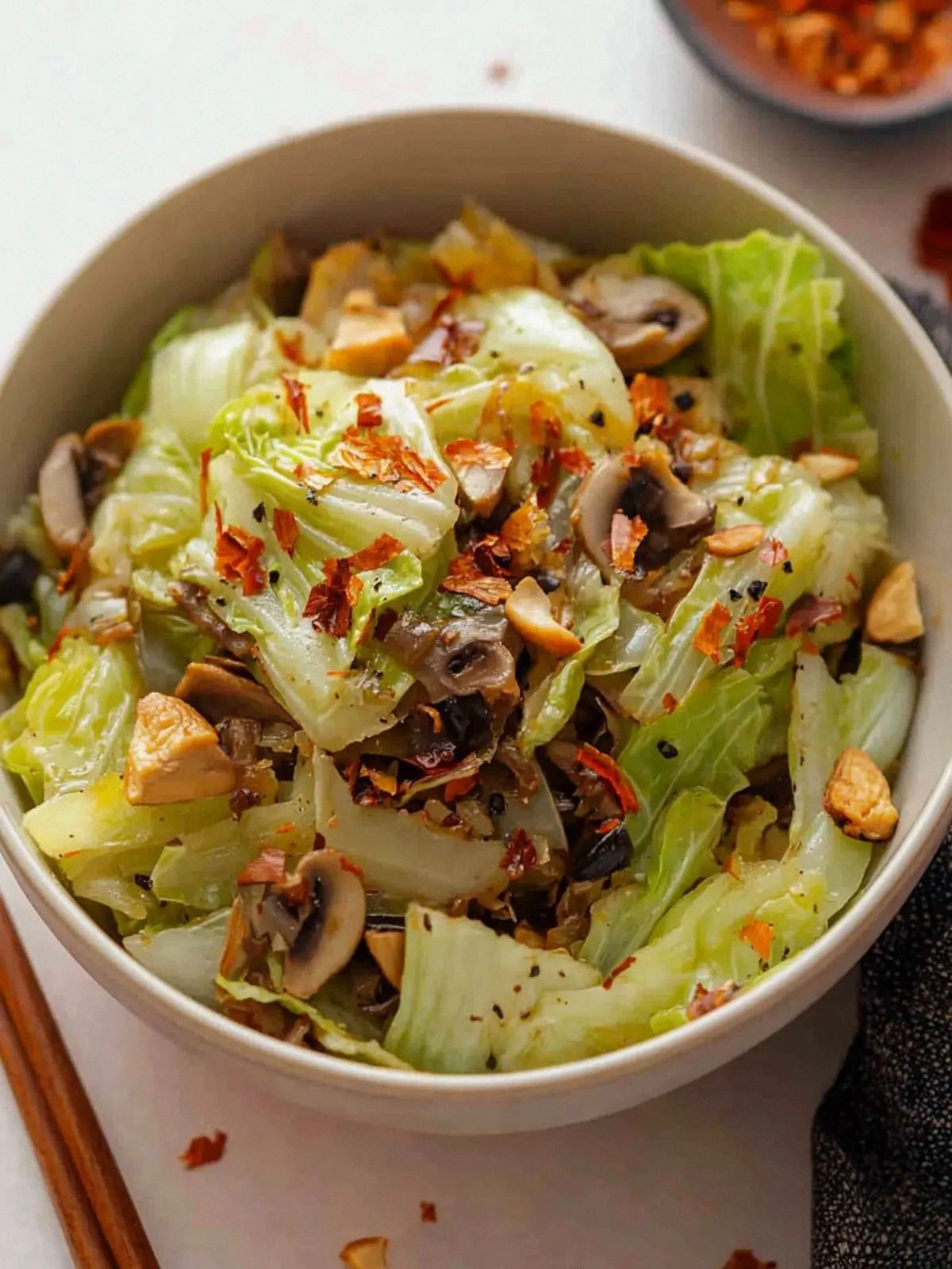 Most recipes get this completely wrong. They either overcook the cabbage, forget the sweet‑sour balance, or neglect the subtle heat that gives the dish character. Here’s what actually works: start with a hot pan, add oil, then garlic and ginger for a quick aromatics burst; then introduce the mushrooms, letting them brown before adding the cabbage; finally, finish with the sauce and sesame seeds. Each step builds upon the last, creating layers of flavor that dance on the palate. Stay with me here — this is worth it.