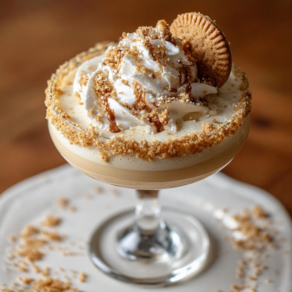 Use chocolate chip cookies for the rim and replace the white chocolate liqueur with a mocha liqueur. The chocolate flavor becomes more pronounced, giving the drink a rich, dessert‑like quality. The result feels like a chocolate cookie martini with a creamy twist.